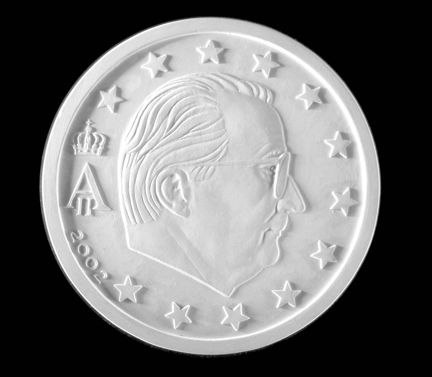 Premier plâtre du profil du Roi Albert II, face de l'euro Belge¨pour 2002.Ce document est libre d'utilisation pour un usage culturel et non commerciale, il reste toutefois soumis au copyright ©DADA.