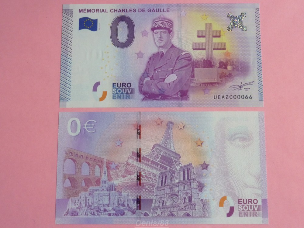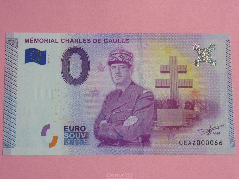 Inscription sur le billet : MÉMORIAL CHARLES DE GAULLE
