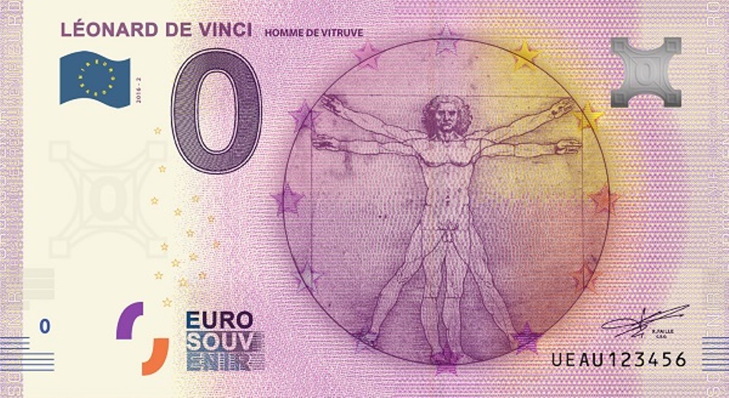 Inscription sur le billet : LÉONARD DE VINCI HOMME DE VITRUVE